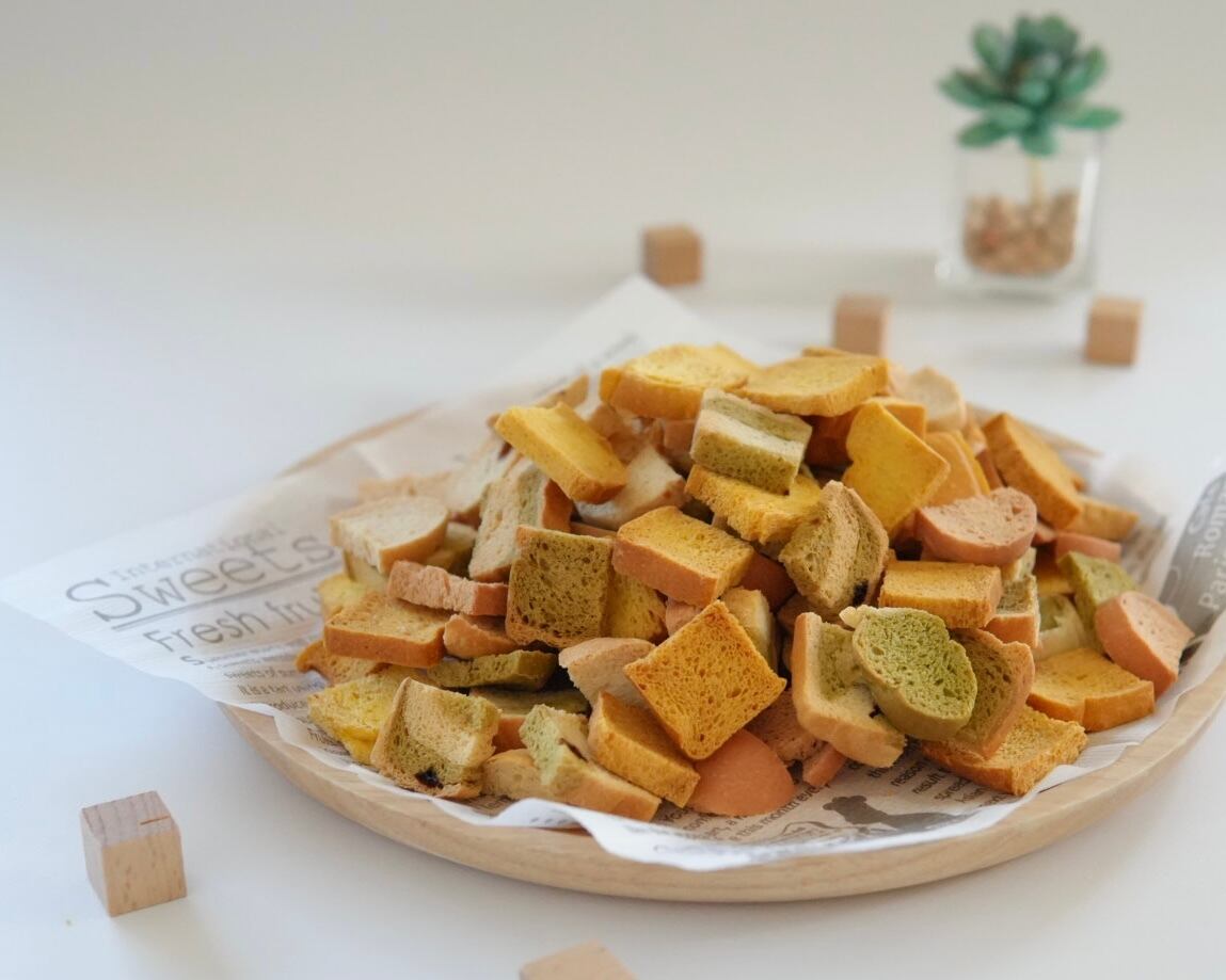 軽やかなパンの風味をそのまま生かし、愛犬のおやつタイムにぴったりな一品です。小さな一口サイズで、毎日のお楽しみにおすすめします。お散歩のおともや、特別なひとときにぜひどうぞ!
